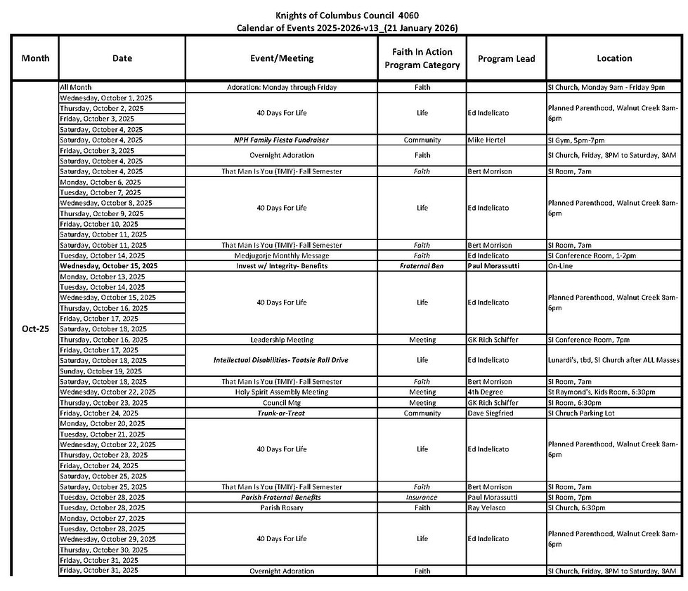 We also cooperate as brother Knights in such fine service opportunities as the East Bay Stand Down (for Veterans).
